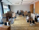 Am 2. Mai führten wir dann unser Projekt, von 14 Uhr-16 Uhr, durch. Die Vorbereitung fiel uns leicht, da wir nur 6 Tische und unsere selbstgebastelten Trennwände aus Karton aufstellen mussten. Der Ablauf war für uns danach ziemlich leicht, weil jeder einzelne Teil des Projekts durchgeplant war. Die Teilnehmer*innen sind nacheinander vor dem Mehrzwecksaal gekommen und wir haben ihnen gleich die Augenbinden aufgesetzt. Danach führten wir sie in den Saal rein und brachten sie zu ihren Plätzen.