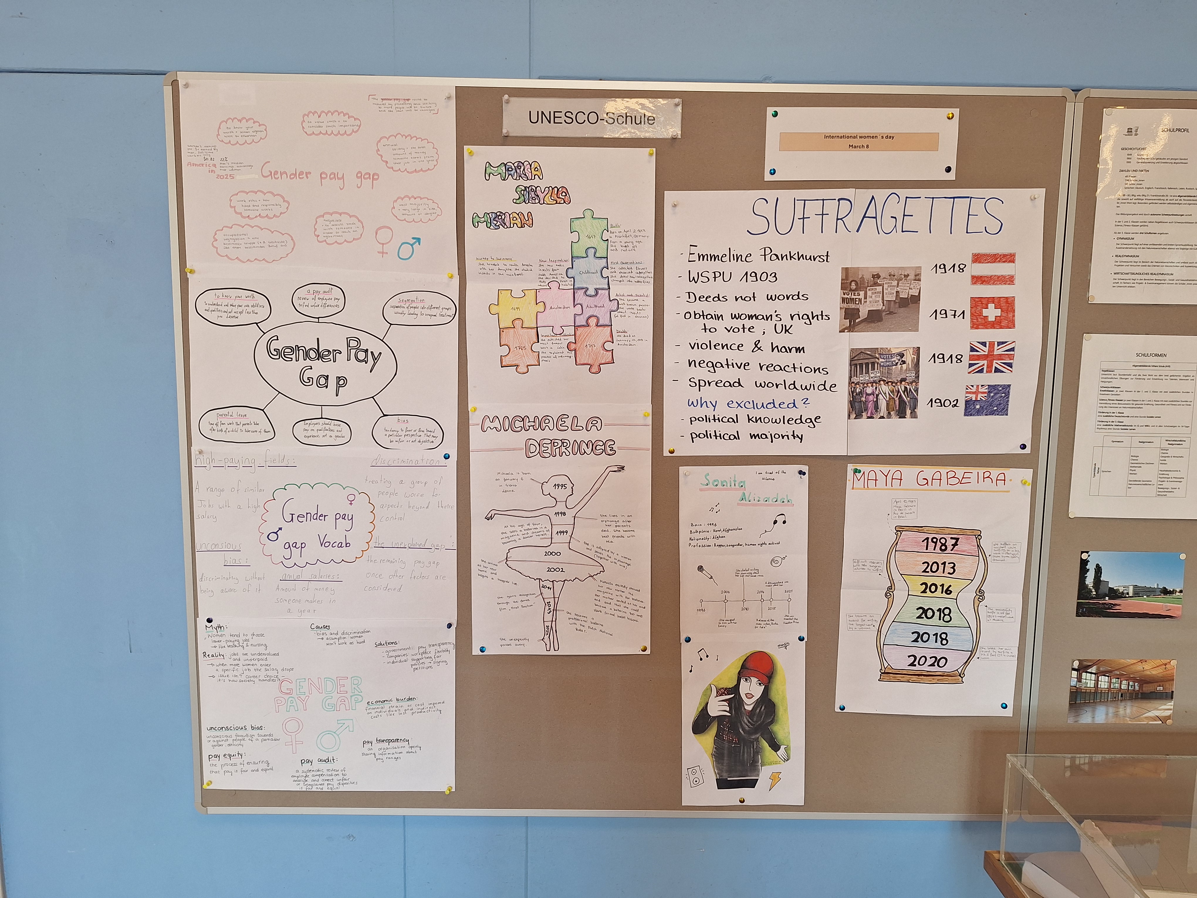 Im März 2026 nahm die F26 den internationalen Frauentag zum Anlass, in den drei Wochen bis zu den Osterferien schwerpunktmäßig die Bedeutung von Frauen in der Geschichte sowie die immer noch vorherrschenden Ungerechtigkeiten zwischen den Geschlechtern zu einem brennenden Thema in verschiedenen Unterrichtsgegenständen zu machen. So entstanden Mind-Maps zum Gender Pay Gap, Steckbriefe zu großen Frauen aus der Geschichte, aber auch Karikaturanalysen zur Entwicklung der Frauenrechte und sogar ein Video zu einem reflexiven Rollenspiel über Klischees.
