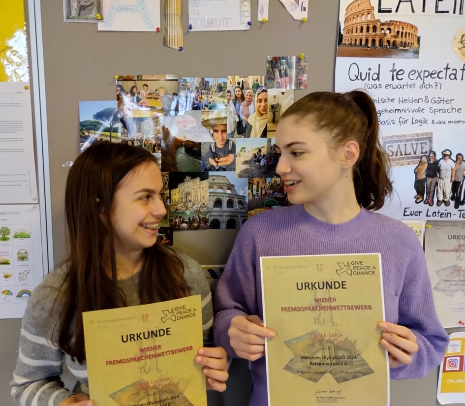z.B. Luciana Dober (7a) und Sonja Trpak (8a) hat der Text ziemlich erheitert (!) – zuerst gut ein Semester lang in der Vorbereitung für die Latein-Olympiade 2024, dann beim schriftlichen Bewerb der besten Lateinschüler*innen Wiens im Februar und im mündlichen Finale am 20. März.