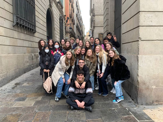 Weiter Aktivitäten waren der Ball de Bastons (Stocktanz), ein beliebter katalanischer Tanz, der Besuch des Hauses von Gaudí und der Sagrada Familia sowie des gotischen Viertels von Barcelona. Am Freitag sind wir sogar mit dem Zug nach Sitges gefahren, eine kleinere Stadt südwestlich von Barcelona. Die meiste Zeit wurden wir von den spanischen Schüler*innen geführt. Sie zeigten uns verschiedene Gebäude und sprachen über die Geschichte der Orte. Natürlich sind wir auch wieder in ihre Schule gegangen, um an Projekten wie dem Radio-Podcast zu arbeiten oder Poster zu einem bestimmten Thme zu erstellen, das uns vorgegeben wurde. Außerdem haben wir, wie auch die anderen Schüler*innen, eine Präsentation über die Corona-Situation in unserem Land gehalten. Dadruch konnten wir die Ähnlichkeiten und Unterschiede der Maßnahmen erkennen, die unsere Regierungen in Bezug auf die Pandemie ergriffen haben.