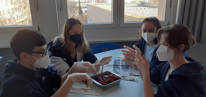 Wir, die 4A, haben am 10. März 2022 in der ersten Stunde in Gruppen Schweineherzen seziert.