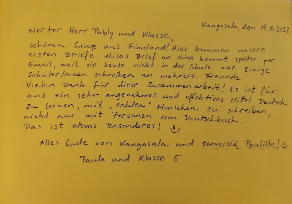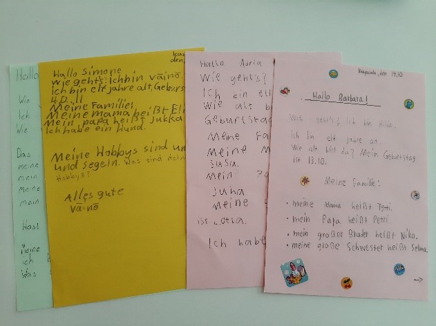 Durch den Umzug eines neuen Schülers aus Finnland nach Österreich erhält die Kreativklasse 2E in diesem Schuljahr die Möglichkeit Brieffreundschaften mit skandinavischen Kindern zu knüpfen. Unsere Partnerschule ist dabei die „Kirkkoharjun koulu”, eine Grundschule in der südfinnischen Kleinstadt Kangasala. Die Schüler*innen lernen dort die Sprache Deutsch als Freifach und sollen über den Briefverkehr mit reellen Personen ihre eigenen Lese- und Schreibkenntnisse vertiefen. Die ersten Texte sind gerade pünktlich vor den Herbstferien angekommen und strotzen vor Interesse an der Lebensrealität unserer Schüler*innen.
