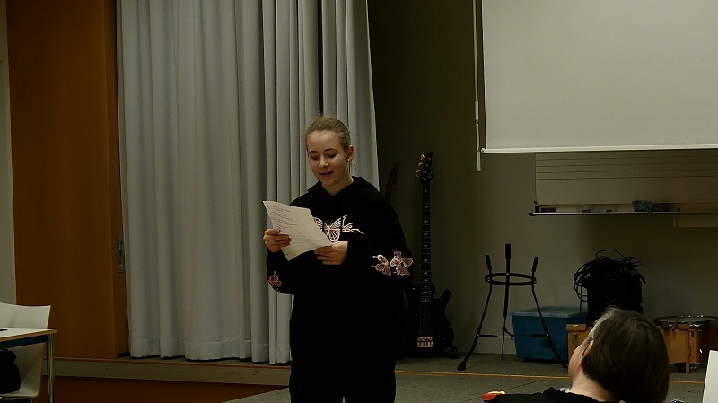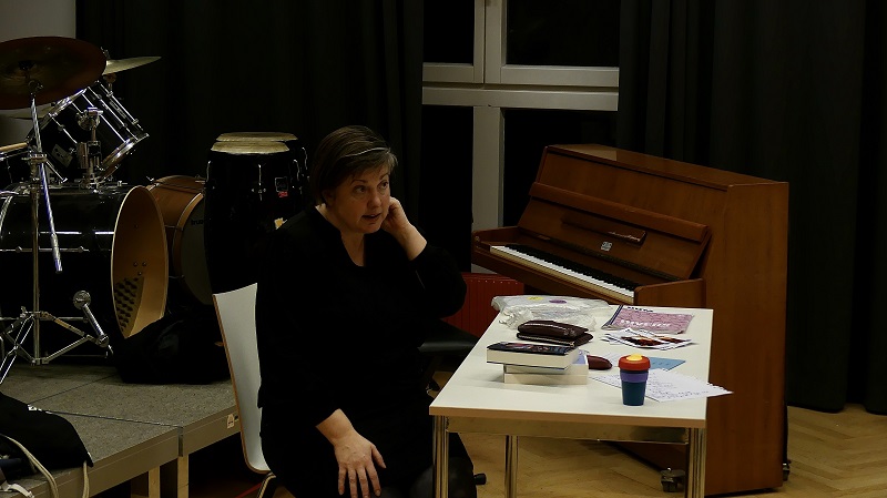 Bei uns hat sie den Teilnehmer*innen zur Inspiration ihre eigenen Texte vorgetragen und mit ihnen eigene Texte entwickelt.