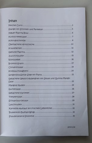 Unsere Klasse, die 3E, hatte im Biologieunterricht (mit unserer Direktorin Frau Professor Inge Jöbstl) den Auftrag kleine Präsentationen über ein von uns ausgewähltes Gemüse vorzubereiten. Bei jeder unserer Präsentationen sollten wir am Ende auch noch ein passendes Rezept mit dem ausgewählten Gemüse einfügen. Wir stellten also im Unterricht unser Gemüse und unser Rezept vor. Während einer unserer Präsentationen kam Frau Professor Jöbstl die Idee, alle Rezepte in einem Kochbuch zusammenzufassen. Daraufhin hat sich ein Team aus fünf Freiwillige (Tobias Ottensamer, Marie Voglsinger, Marko Dvorak, Annika Müller & Norah Frodl) zusammengestellt. Innerhalb von zwei Tagen hatten wir alle Rezepte zusammengeschrieben, formatiert und ausgedruckt.
