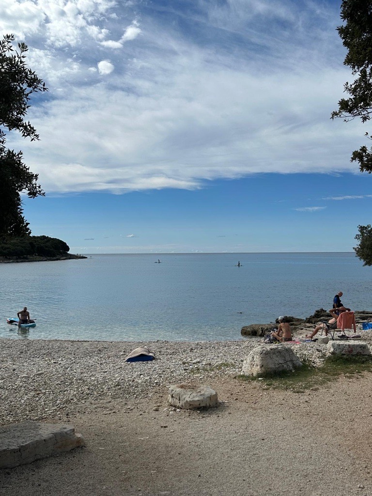 Der dritte Tag war besonders spannend, denn es ging zur Roten Insel, die für ihre faszinierende Unterwasserwelt bekannt ist. Nach dem morgendlichen Vortrag von Gerwin machten wir uns auf den Weg nach Rovinj, wo wir ein Boot bestiegen, das uns zur Roten Insel brachte. Diese Inselgruppe ist nicht nur wegen ihrer Naturschönheiten bekannt, sondern auch aufgrund einer Entdeckung, die österreichische Forscher im 19. Jahrhundert machten: Sie fanden dort eine beeindruckende Höhle, die heute als „Blaue Grotte“ bekannt ist. Die Höhle zeichnet sich durch das außergewöhnliche Farbenspiel des Wassers aus, das durch das Licht reflektiert wird. Nach einem kurzen Spaziergang auf der Insel erreichten wir unseren Zielort, wo wir den gesamten Tag mit Schnorcheln verbrachten. Es war ein unvergessliches Erlebnis, das mit einer intensiven Nachbesprechung in den Gruppen abgerundet wurde. Für viele von uns war dieser Tag das absolute Highlight der gesamten Woche. Am Abend kehrten wir erschöpft, aber glücklich zum Campingplatz zurück, wo uns ein leckeres gemeinsames Abendessen erwartete.
