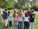 Bei Seildrehen wird ein Seil wie beim Seilspringen gedreht doch anstatt zu springen muss man durchlaufen, erst allein, dann im Rhythmus, dann zu zweit, dann alle gleichzeitig. Bei Tower of power hatte man einen Haken an einem Brett mit lauter Seilen daran und Holzklötze mit Rillen. Das Ziel war es die Seile so zu bewegen, dass der Haken in einer der Rillen bleibt und man die Klötze aufeinanderstapelt. In den Pausen wurde hauptsächlich gegessen, doch in einer Pause beschloss fast die ganze Klasse verstecken zu spielen. Die Klasse traf auch einen berühmten Influencer, der online den Namen Mohi_07 nutzt.