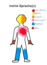Tatsächlich gilt die Regel, dass kaum ein Mensch und schon gar keine Gesellschaft einsprachig ist. Abschließendes Highlight des Vormittags war schließlich die Erstellung eines individuellen Sprachenportraits, bei der alle Körperteile einer leeren Silhouette mit der eigenen Sprachenvielfalt befüllt wurden. Dazu gab es am Ende noch reflexive biographische Interviews zu den Porträts in Kleingrupppen.