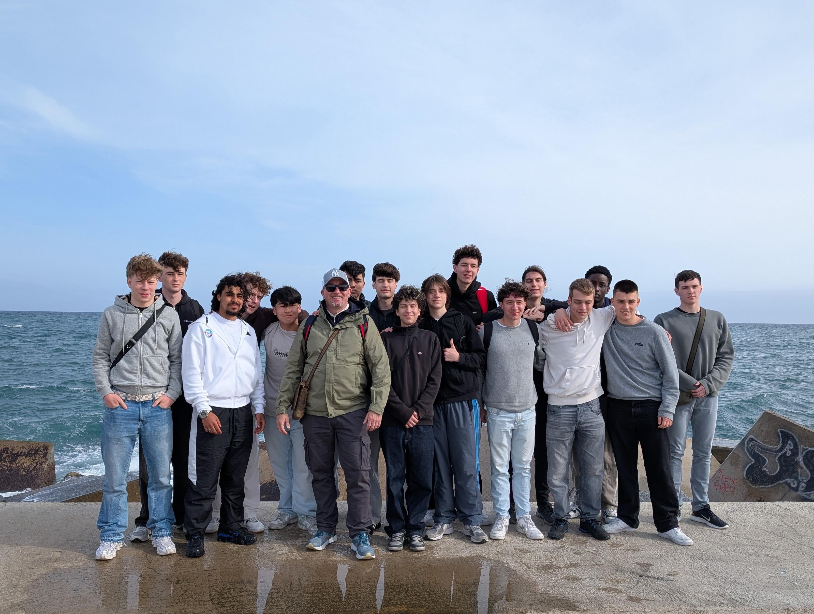 In den ersten zwei Tagen unseres Aufenthalts konnten wir das sonnige Wetter in vollen Zügen genießen. Doch der kältere Donnerstag konnte uns genauso wenig davon abhalten, an den Strand zu fahren! Nach einem Gruppenfoto auf einem Klettergerüst mit Blick auf das Meer haben wir mit den spanischen Schüler*innen Volleyball gespielt.